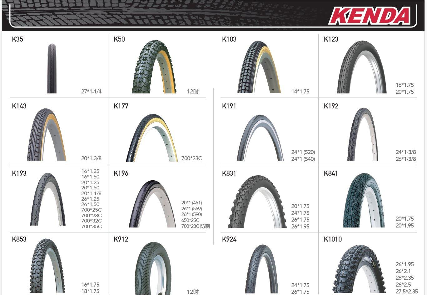 | K1082 | 20*1.35 60TPI 100PSI 防刺 | 黑邊/紅邊/白邊 | 外胎,一般修補 |